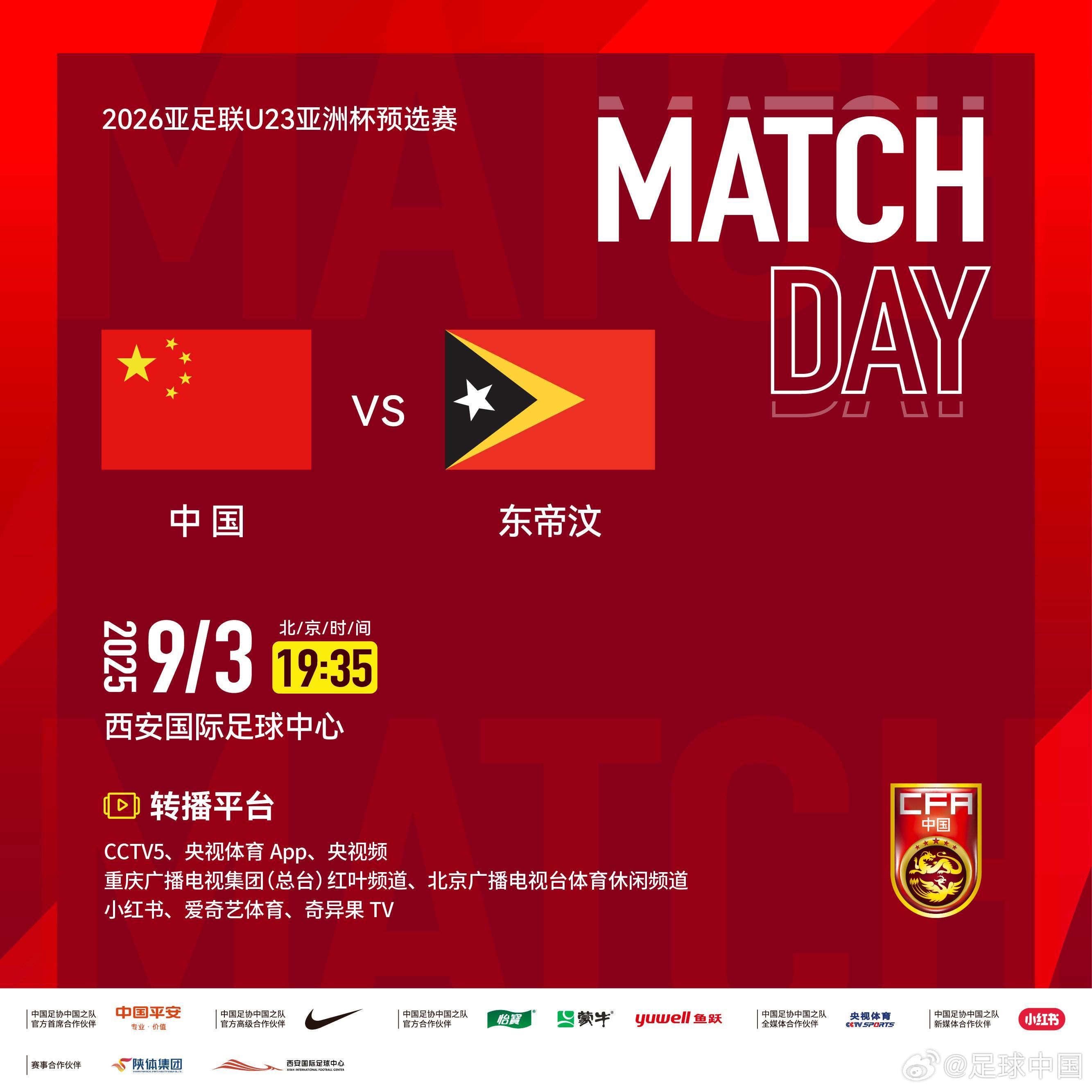 北京时间9月5日,足球中国官方发布了U23亚洲杯预选赛第二轮中国U22vs北马里亚纳群岛U22的转播预告。
